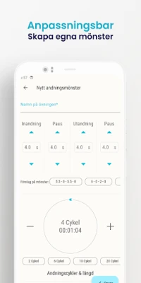 Breathe erbjuder tre förinställda andningsövningar för lugn och fokus. Skapa dessutom dina helt egna anpassade andningsmönster för att matcha dina unika behov. Upplev ökad välbefinnande genom personlig andningsträning med Breathe.