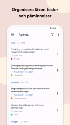 Upplev en exceptionellt användarvänlig plattform med en vacker och modern design, inspirerad av Googles Material Design. Denna estetik bidrar till en intuitiv och givande upplevelse i varje interaktion. Med sömlös synkronisering håller du dina agendor uppdaterade på alla dina enheter, medan automatisk säkerhetskopiering till Google Drive garanterar att din värdefulla studieinformation alltid är trygg och tillgänglig när du behöver den. Det är ett komplett system designat för att effektivisera din akademiska resa från början till slut.