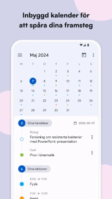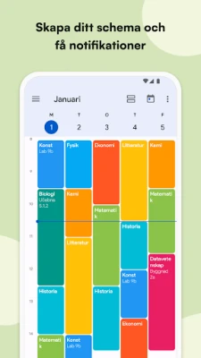 För studenter kan det vara en utmaning att hålla ordning på alla akademiska åtaganden. Detta intuitiva verktyg är designat för att förenkla din studievardag genom att erbjuda en sömlös lösning för att anteckna läxor, uppgifter, tentor och viktiga påminnelser. Med dagliga aviseringar missar du aldrig en deadline eller ett viktigt evenemang igen. Appens inbyggda kalender är skräddarsydd för studentens unika behov, vilket gör det enklare än någonsin att hantera alla dina skolrelaterade händelser och aktiviteter. Håll koll på ditt dagliga schema och veckoschema med en anpassningsbar tidtabell, där du kan tilldela distinkta färger till varje ämne och enkelt integrera kalenderhändelser för en komplett överblick av dina studier.