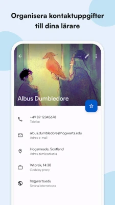 Optimera dina studieresultat genom avancerad hantering av kurser och betyg. Applikationen beräknar automatiskt ditt genomsnitt, vilket ger dig en tydlig bild av dina framsteg och var du står i varje ämne. Fånga viktiga föreläsningar med den inbyggda inspelningsfunktionen som automatiskt organiserar dina ljudfiler för enkel åtkomst och repetition. Samla all din lärares kontaktinformation – inklusive telefonnummer, kontorstider och e-postadresser – på ett organiserat sätt så att du alltid har den nära till hands.