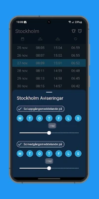 För den som söker det lilla extra erbjuder appen detaljerad information om solens gyllene och blå timmar – perfekt för fotografer eller den som vill maximera sin upplevelse av ljusets skiftningar. Med en bekväm widget direkt på hemskärmen har du alltid solens schema nära till hands. Utöver detta kan du utforska tider för civil, nautisk och astronomisk skymning, lokalisera dig snabbt med GPS, spara dina favoritplatser för enkel åtkomst och njuta av en helt annonsfri upplevelse. Med en smidig snooze-funktion för larmen får du dessutom full kontroll över din morgonritual.