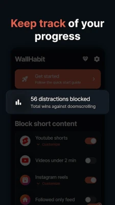 WallHabit är din lösning för att blockera distraktioner som Shorts och Reels. Som ett engagemangsverktyg hjälper WallHabit dig att bryta dåliga digitala vanor och effektivt stoppa prokrastinering på några sekunder.