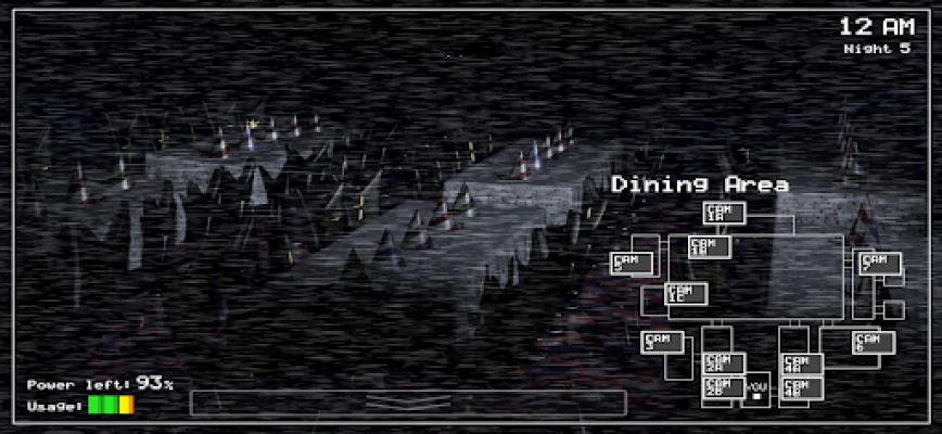 Från ditt klaustrofobiska kontor måste du noggrant övervaka varje vrå via säkerhetskamerorna. Din enda räddning är en begränsad elförsörjning – ett resultat av företagets snåla budget. Varje dörr du stänger, varje lampa du tänder, förbrukar värdefull ström. När reserven är tömd, blir du lämnad i mörkret, utan försvarsmekanismer. Håll ett vakande öga på monitorerna; om Freddy eller någon av hans vänner inte är på sin rätta plats, måste du agera snabbt. Deras obehagliga vandringar är ingen lek, och du måste försvara dig när den ultimata faran närmar sig.