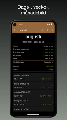 iboChron gör det enkelt att registrera arbetstider och pauser. Få full översikt över timmar, övertid, sjukfrånvaro, semester och inkomst. Dela enkelt dina timöversikter i CSV via e-post. Perfekt för egenföretagare, frilansare och anställda som vill ha koll på sin tid och lön.