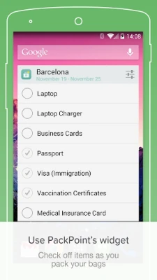 PackPoint travel packing list, hyllad av Google Play och ledande medier som BBC och CNN, är din smarta packlista. Appen skapar skräddarsydda listor för din resa baserat på längd, väder och aktiviteter. Aldrig mer glömma något! Spara, organisera och dela enkelt dina packlistor med vänner och familj för en stressfri upplevelse.