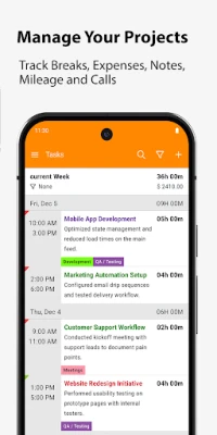Timesheet erbjuder robusta funktioner för projektadministration, så att du enkelt kan organisera din tid per klient, projekt och specifika uppgifter. Tilldela anpassade timpriser och taggar för att skräddarsy din fakturering, samtidigt som du enkelt kan filtrera, söka och arkivera projekt för att hålla fokus på de mest relevanta uppgifterna. Utöver ren tidsregistrering kan du spåra återbetalningsbara utgifter med kvitton, lägga till detaljerade anteckningar för mötesresultat eller nästa steg, och logga betalda raster separat för att upprätthålla absolut noggrannhet i din tidsrapportering. Skapa snabbt professionella rapporter i XLSX- eller CSV-format för fakturering eller lönehantering, med flexibla datumintervall och smidiga delningsalternativ via e-post eller molntjänster.