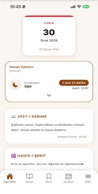 Upplev en fördjupad och smidig andlig vardag med en applikation designad för att möta dina religiösa behov med precision. Denna digitala följeslagare erbjuder exakta bönetider, automatiskt uppdaterade utifrån din aktuella position och baserade på tillförlitlig data från Diyanet İşleri Başkanlığı. Aldrig mer behöver du oroa dig för att missa en bön; med anpassningsbara azan-aviseringar kan du välja mellan olika böneutrop och ställa in påminnelser innan varje tid för att säkerställa att du alltid är redo. Appen är skapad för att ge dig lugn och ro i din dagliga andakt, var du än befinner dig.