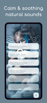 Förvandla din omgivning till en oas av lugn med White Noise Zen Sleep Sounds, din reklamfria följeslagare för ostörd ro. Denna applikation är utvecklad för att snabbt eliminera distraktioner och fungerar helt offline, vilket garanterar att du aldrig störs av annonser eller internetuppkoppling. Oavsett om du söker djup sömn, skärpt fokus vid ADHD, eller effektiv lindring från tinnitus, erbjuder White Noise Zen Sleep Sounds en skräddarsydd ljudupplevelse. Från rogivande regn och mjukt brunt brus till naturljud, modern meditationsmusik och subtila deltavågor, är varje ljudlandskap skapat för att främja välbefinnande dygnet runt.